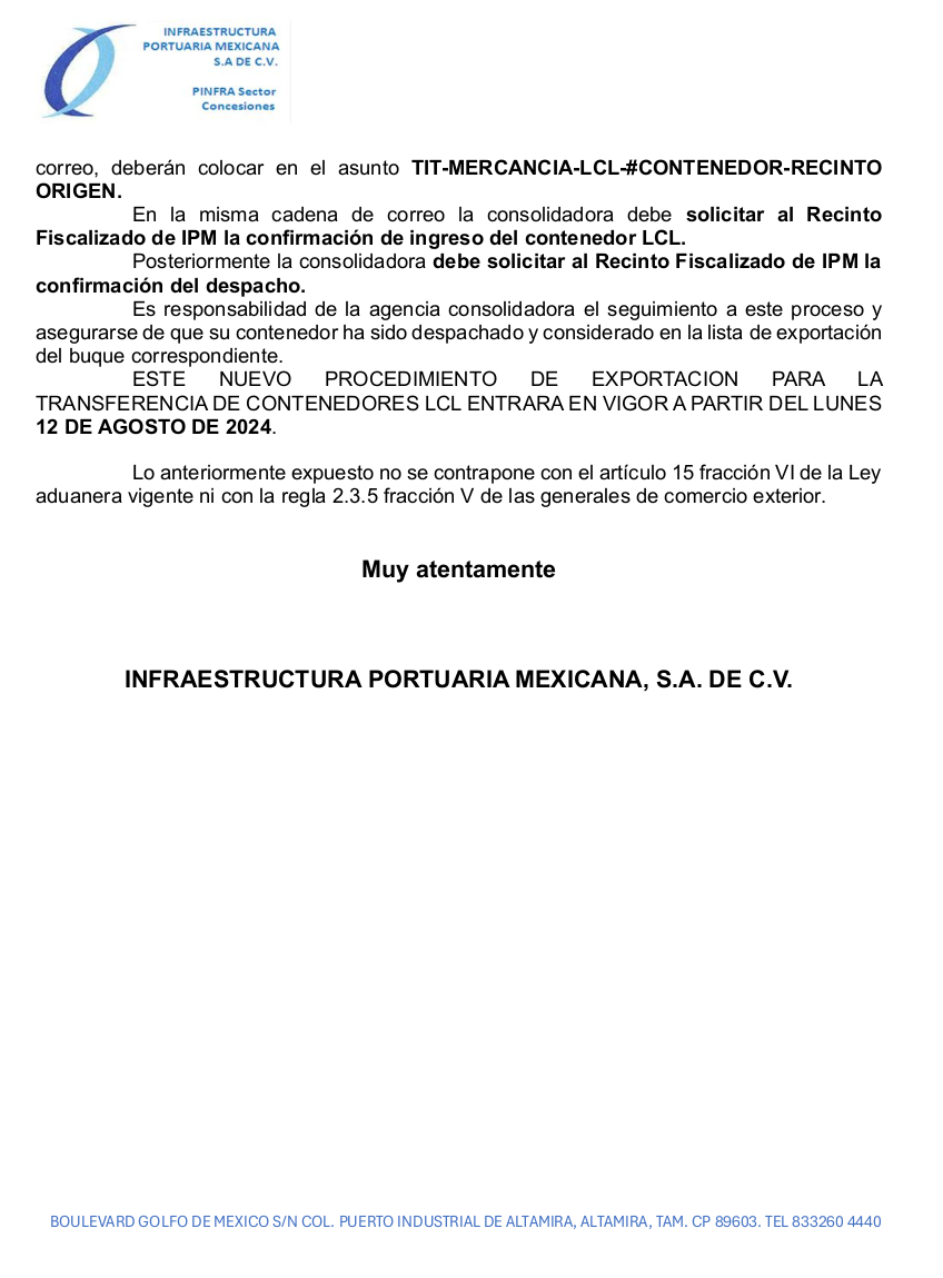 COMUNICADO: Contenedores LCL-TIT