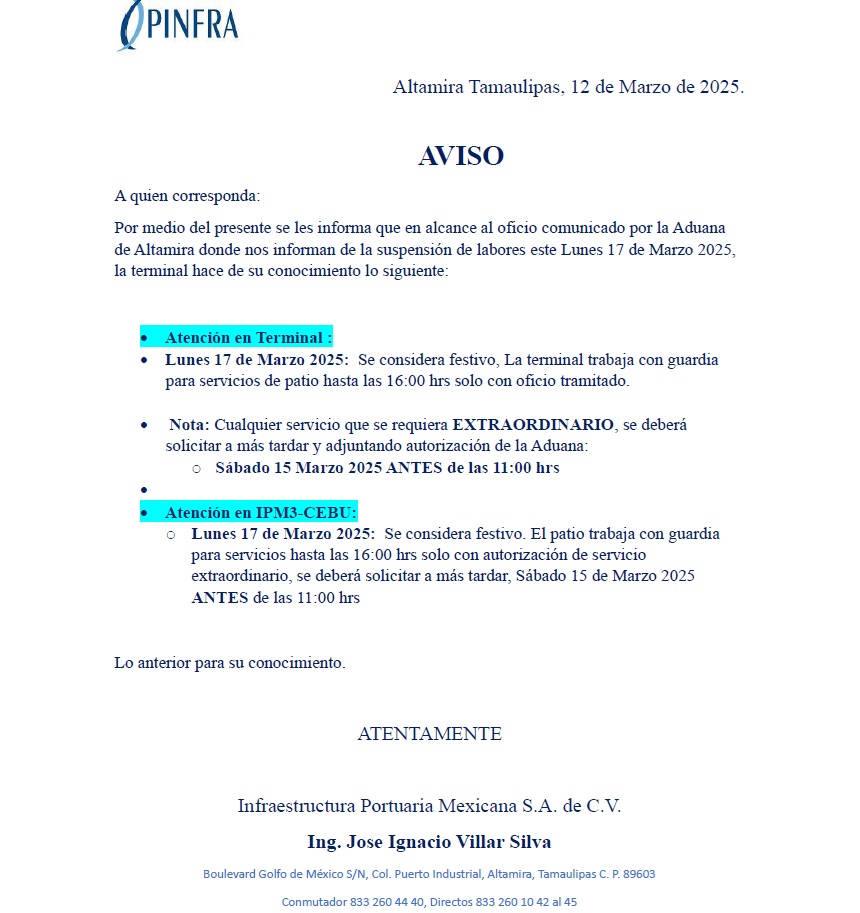 AVISO DIA INHABIL 17 DE MARZO