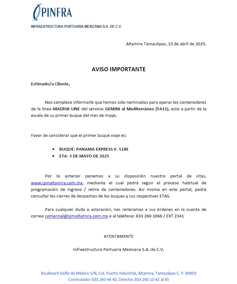 AVISO IMPORTANTE // MAERSK