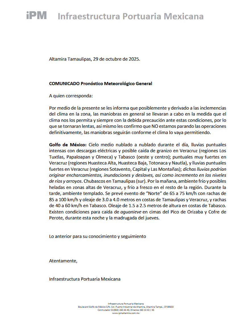 COMUNICADO – FRENTE FRIO NO.11