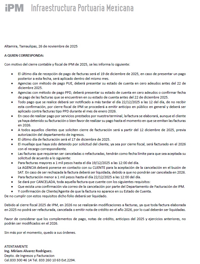 COMUNICADO – CIERRE FISCAL 2025