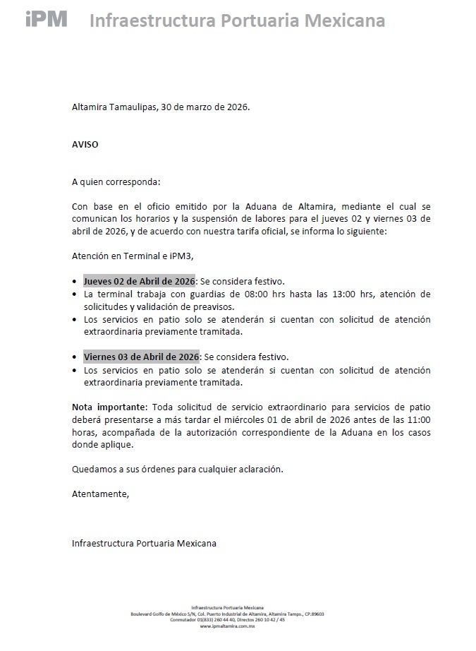 AVISO – DIA INHABIL (2-3 ABRIL)